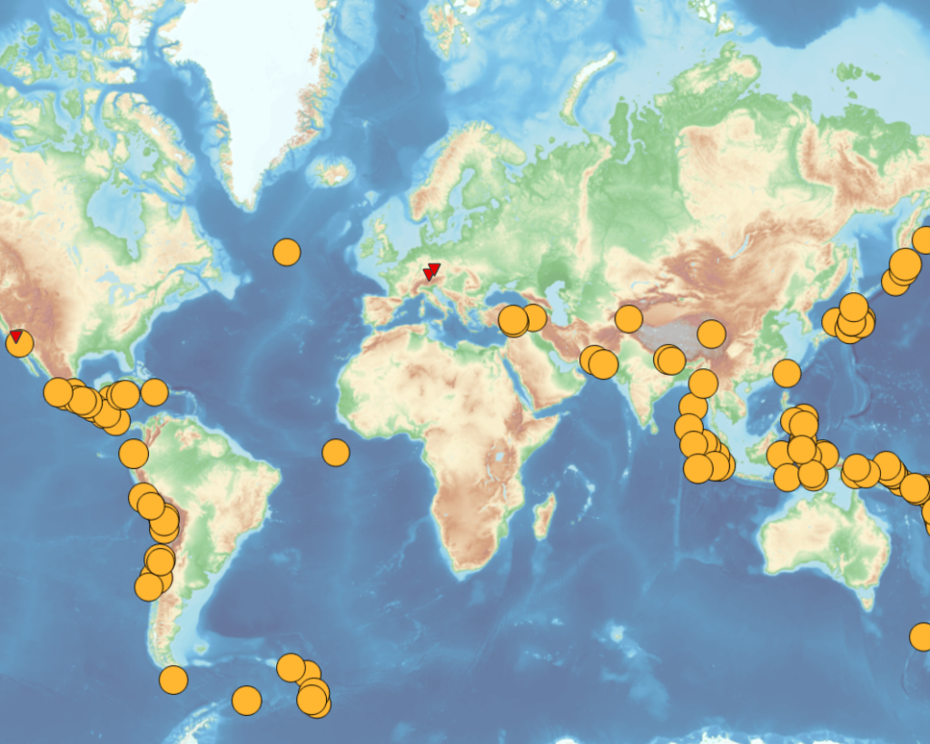 The Rotational Seismology Event Database enable to link global (and for PFO local) seismic events to recordings of 4-6 DoF stations, comprising G-Ring (single vertical component), ROMY (three components) in Germany, and the BlueSeis-3A sensor at Pinon Flat Observatory, California. The www site can be accessed here.